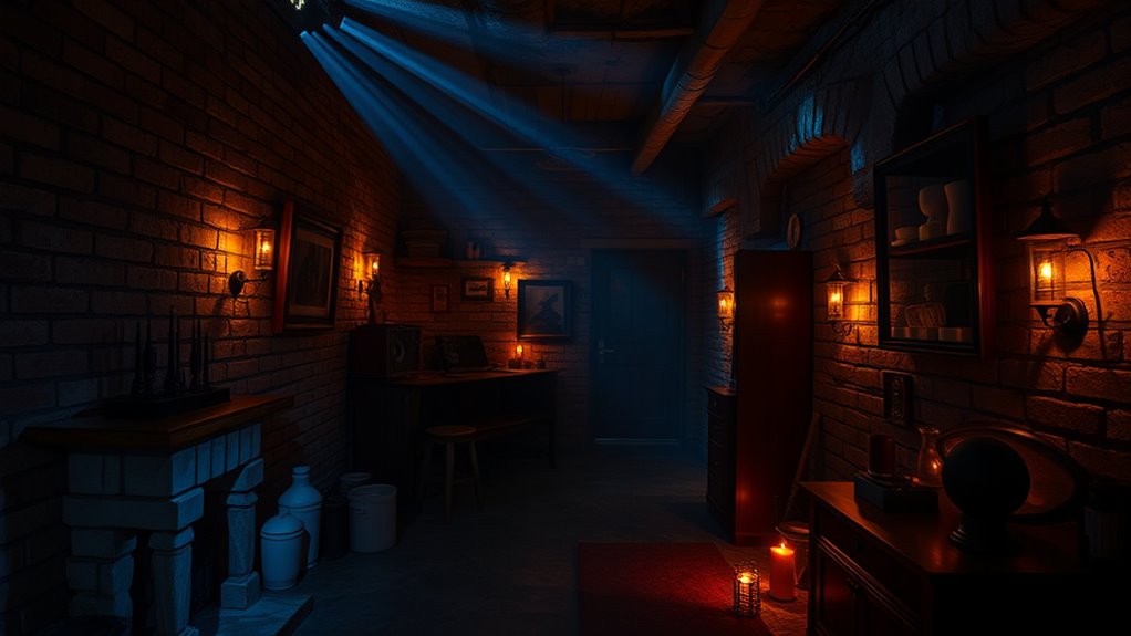 Lighting and sound are essential elements that can make or break the immersive experience of an escape room. When you step into a well-designed room, the right combination of these elements instantly pulls you into a different world. Visual effects, such as dim lighting, flickering bulbs, or colored lights, help create a compelling ambient atmosphere that heightens your sense of mystery and tension. You might notice how subtle changes in lighting evoke different emotions—soft, warm tones can make the environment feel cozy or nostalgic, while harsh, cold lighting can generate unease or urgency. These visual effects are carefully curated to complement the story and puzzles, guiding your attention and shaping your perception of the space. They also influence your mood, making you feel more engaged and immersed in the narrative. The ambient atmosphere, crafted through a combination of lighting and visual effects, acts as an emotional backdrop that sustains your focus and heightens your senses. Additionally, the strategic use of personality traits can influence how players respond to various scenarios, enhancing the overall experience.