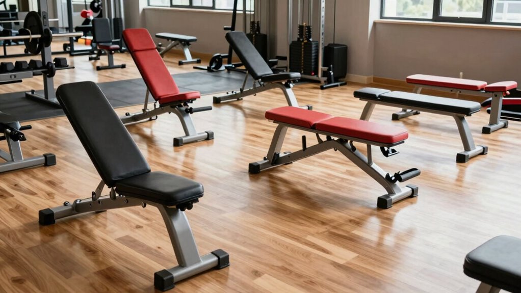 It’s vital to choose a bench that supports a wide array of workouts, including strength training, ab exercises, and even rehabilitation routines. I look for ones with rapid adjustment mechanisms, like quick-lock systems, for seamless shifts between exercises. Additional features, such as leg extensions or preacher pads, can further diversify my workout options and enhance muscle targeting for a thorough fitness routine.