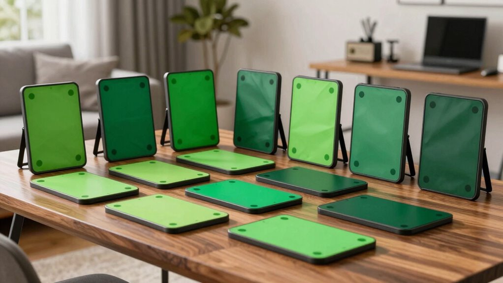 In 2026, I’ve found some fantastic green screen kits that’ll elevate your video calls. From the versatile 5×6.5ft JEBUTU backdrop to the portable 43-inch Cosmos screen, there’s something for everyone. The EMART kit is great for easy setup, while the HEMMOTOP 2-in-1 offers dual options. If you’re gaming or teaching online, the Portable Green Screen Chair is perfect. You won’t want to miss out on the details to help you choose the best fit!