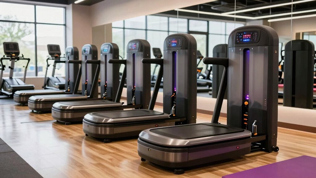 How can the right vibration speed options enhance your workout experience? Choosing a vibration plate with adjustable speeds, typically ranging from 1 to 250, lets you customize your workout intensity. I’ve found that starting at lower speeds helps my body acclimate before gradually increasing the intensity. Some models even offer preset programs that automatically adjust the vibration speed based on my movements, making my sessions more effective. With vibration frequencies between 10 to 40 Hz, I can target different muscle groups, ensuring a balanced workout. Additionally, higher amplitude settings, like 11mm to 13mm, provide deeper muscle activation, which I appreciate. Ultimately, finding the right speed options can greatly elevate my exercise routine and results.
